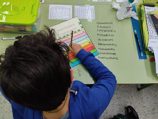 Una buena forma de trabajar las letras, la motricidad fina y el trabajo cooperativo, ya que se ayudaron unos a otros.